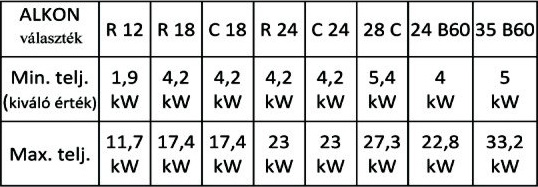 Az Alkon ’09 C 18 és C 24 és 28C és 35C kombi fali kazánokat pedig lehet használni